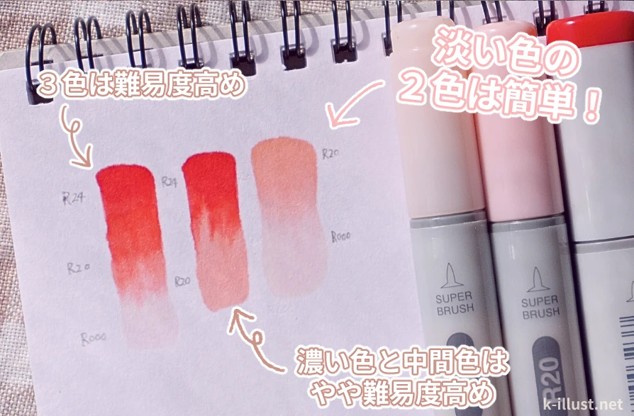 なので初心者さんはまず、淡い色や中間色でグラデーションのコツを掴んで、少しずつ濃い色へとステップアップしていくと挫折せずに楽しくお絵描きできると思います。