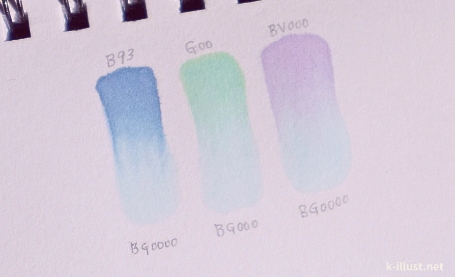 今回は淡い水色のBG0000と淡い紫色のBV000の2色でグラデーションに挑戦してみます。