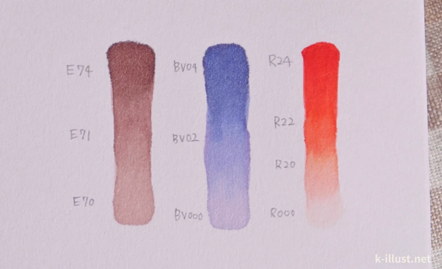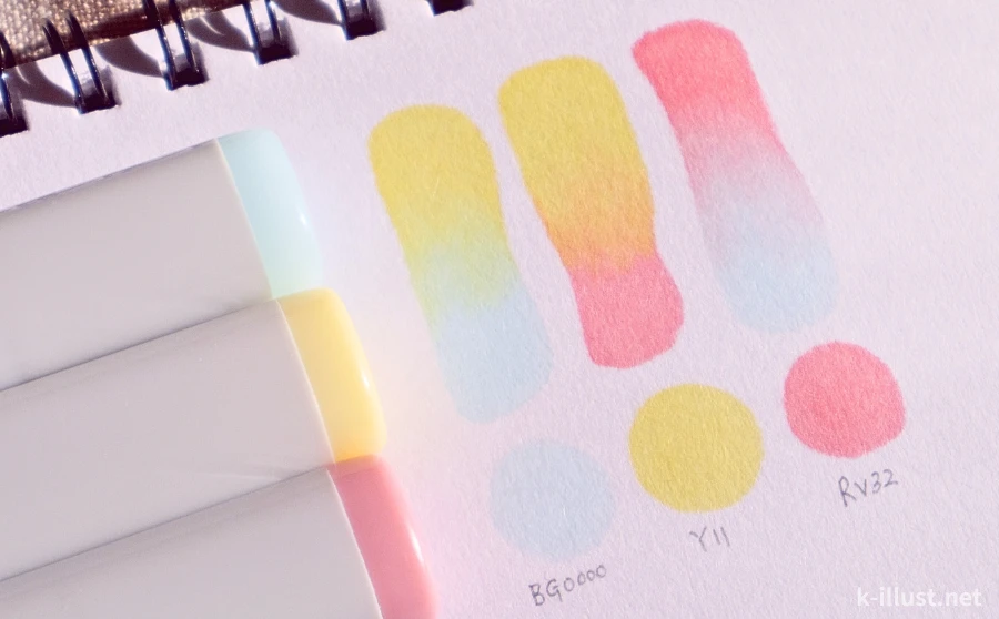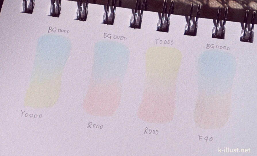 けど、淡い色同士のグラデーションや、中間色と淡い色の2色でのグラデーションは、思いのほかあっさりキレイにできて、そこから一気にコピックが大好きになりました。