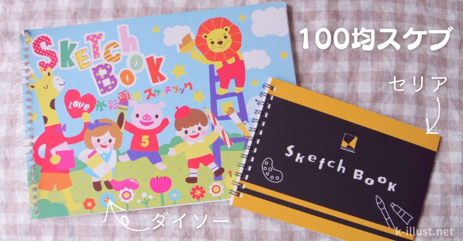 100均のマルマンスケッチブックとか、ダイソーの「水彩画用スケッチブック」なんかがおすすめです。
