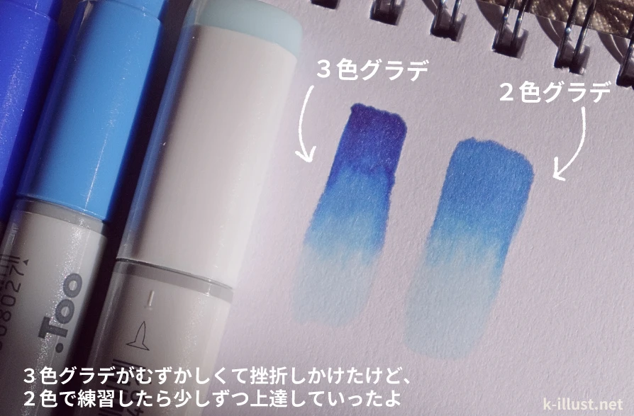 私はコピック初心者だった頃、どうしてもうまくグラデーションさせることができなくてすごく悩んでいた時期がありました。