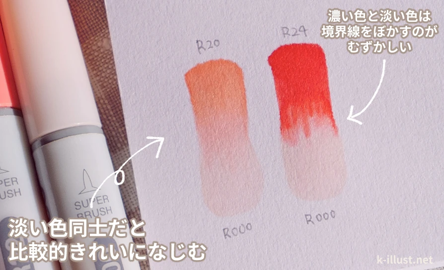 あと、使用する紙によってグラデーションのしやすさが変わってきます。