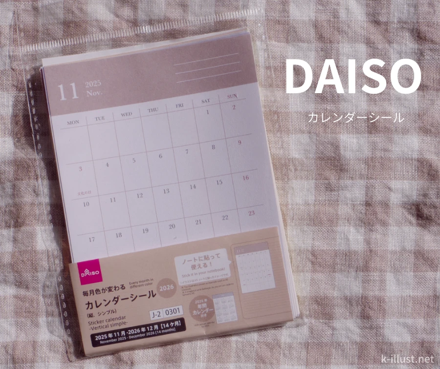 2026年は絶対にカレンダーシールを使ってスケジュール管理がしたい!と張り切ってダイソーへ行ってきたのですが、なんと、手帳コーナーに理想どおりの可愛いカレンダーシールがあって、もうルンルン気分でお迎えしてきました!