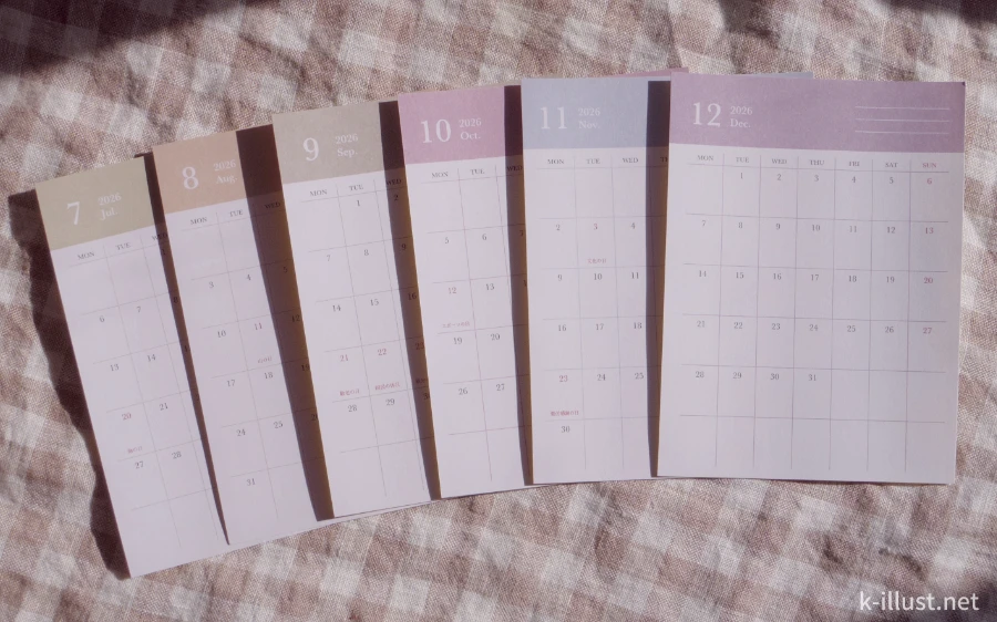 今回購入したのはダイソーの「毎月色が変わるカレンダーシール 2026」なのですが、なんと2025年11月と12月も入っていました。ありがたい。
