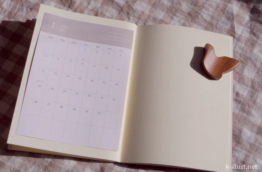 私にとって手帳タイムは、心を整える時間でもあるので、にぎやかなデザインよりも静けさと優しさがただようこのデザインが本当にドストライクすぎます。