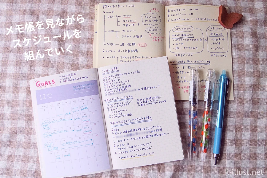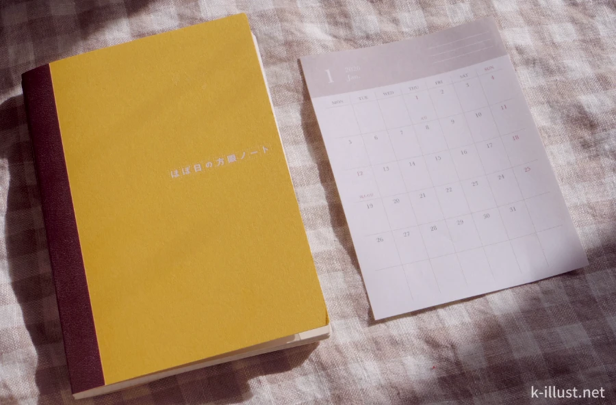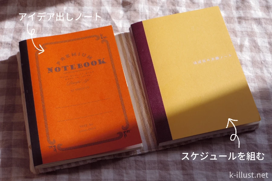 つまり、「プレミアムノートブック」と「ほぼ日の方眼ノート」の2冊を使って月間スケジュールを決めていきます。