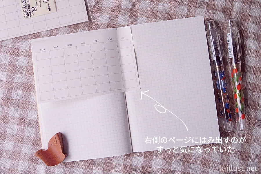 それはA6サイズのノートを縦にして使うと、どうしても右側にはみ出てしまい、バランスが悪くなってしまうのです。