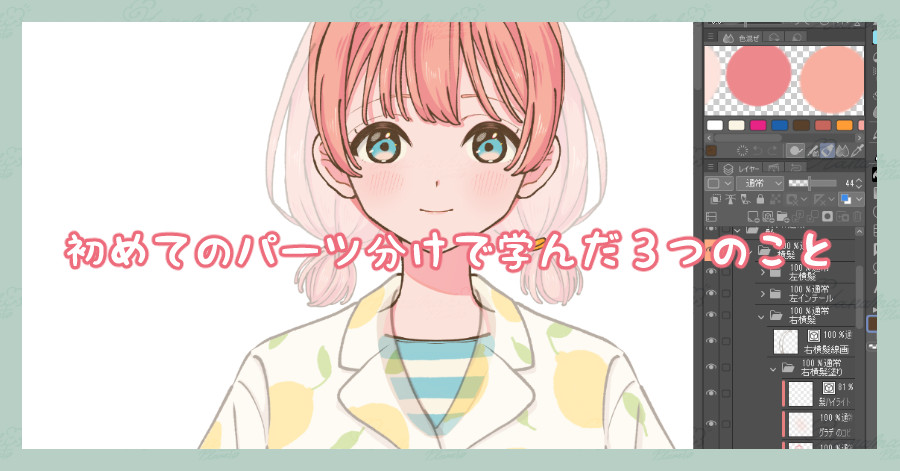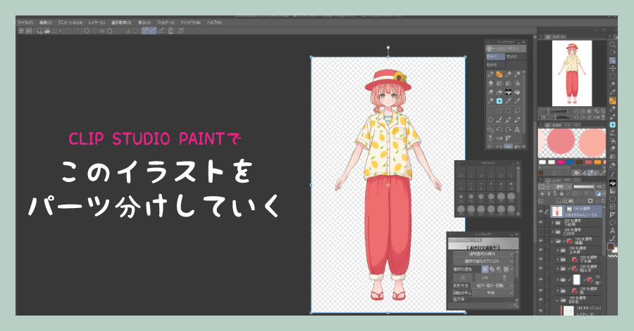 イラストのパーツ分けですが、慣れた方は絵を描きながらパーツ分けされる方もいたりして色んなやり方があると思いますが、今回は完成した一枚絵をパーツ分けする方法を紹介します。