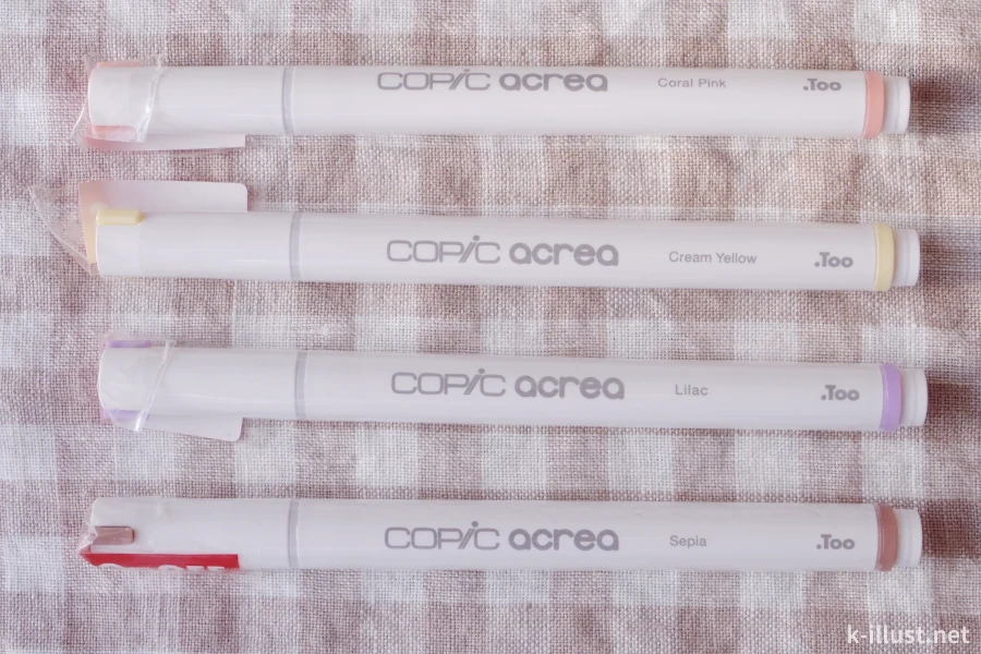 前々から欲しかった「コピック アクレア」がなぜかこの4色だけ半額だったので買ってみました。