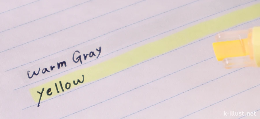 最初に買ったウォームグレーが本当に理想の淡さで、手帳のちょっとしたニュアンスに使えてお気に入りなのですが、もう一つイエローもすごく好きなんです。