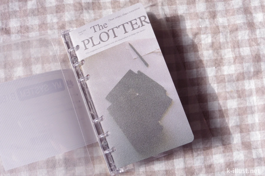 実は最近システム手帳も気になっていて、もしシステム手帳をお迎えするなら「PLOTTER(プロッター)」が良いなって思っていまして。いま、「バイブル」「ナロー」「ミニ6」の3種類のサイズに悩んでいます。やっぱりお高い買い物になるから失敗したくない気持ちが強く、いったんこのクリア素材のバイブルサイズをお試しで使ってみることにしました。