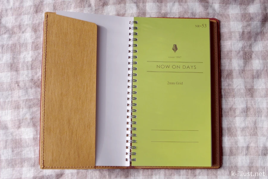 今回の本命、主役であるN.planningの「NOW ON DAYS フッキングノートカバー」です。お色はブラウン。