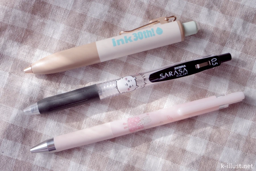 黒色のボールペンが欲しいと思った時、真っ先に思い浮かんだのが実は「Juice up」でした。アナログイラストを描く時、ゴールド、シルバー、ホワイトの3つを愛用していたので、その発色の良さ、書き心地の良さは知っていて、絶対にブラックも良い感じに決まっている!って思って文房具屋さんに行ってきたんです。