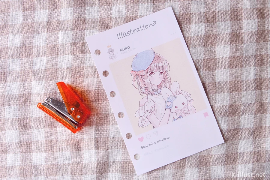 イラストに穴をあけたくないよーって方は、バインダー用の透明リフィルに入れてファイリングするのもいい感じって、これはもう皆さんやられてますよね(*^^*)