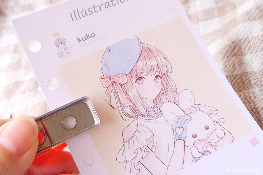 プリンターで印刷したイラストに穴をあけてバインダーに綴じるだけで、世界に1つしかない自分だけのオリジナルイラスト集も作れちゃいます^^